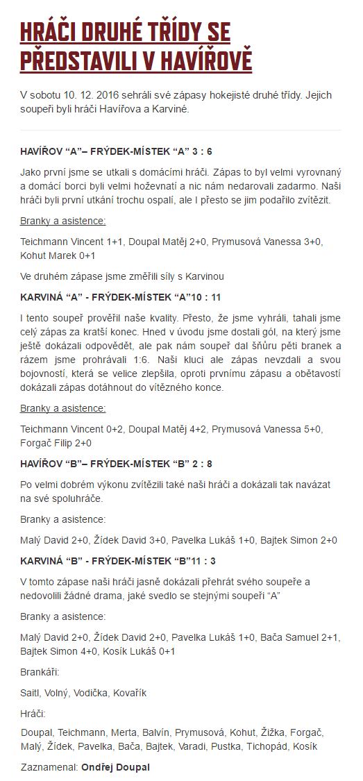 1. Druhá třída se představila doma s Vítkovicemi a Orlovou