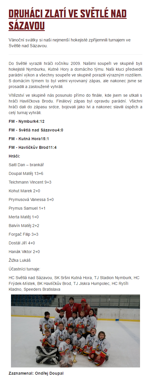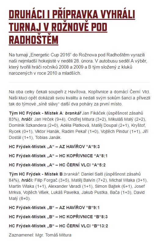 6. Druháci i přípravka vyhráli turnaj v Rožnově pod Radhoštěm