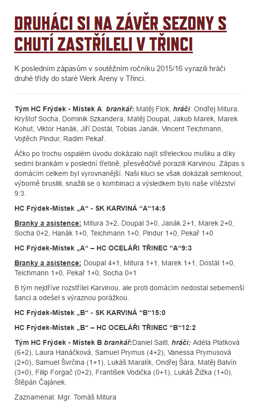 5. Druháci si na závěr sezóny s Chutí zastříleli v Třinci