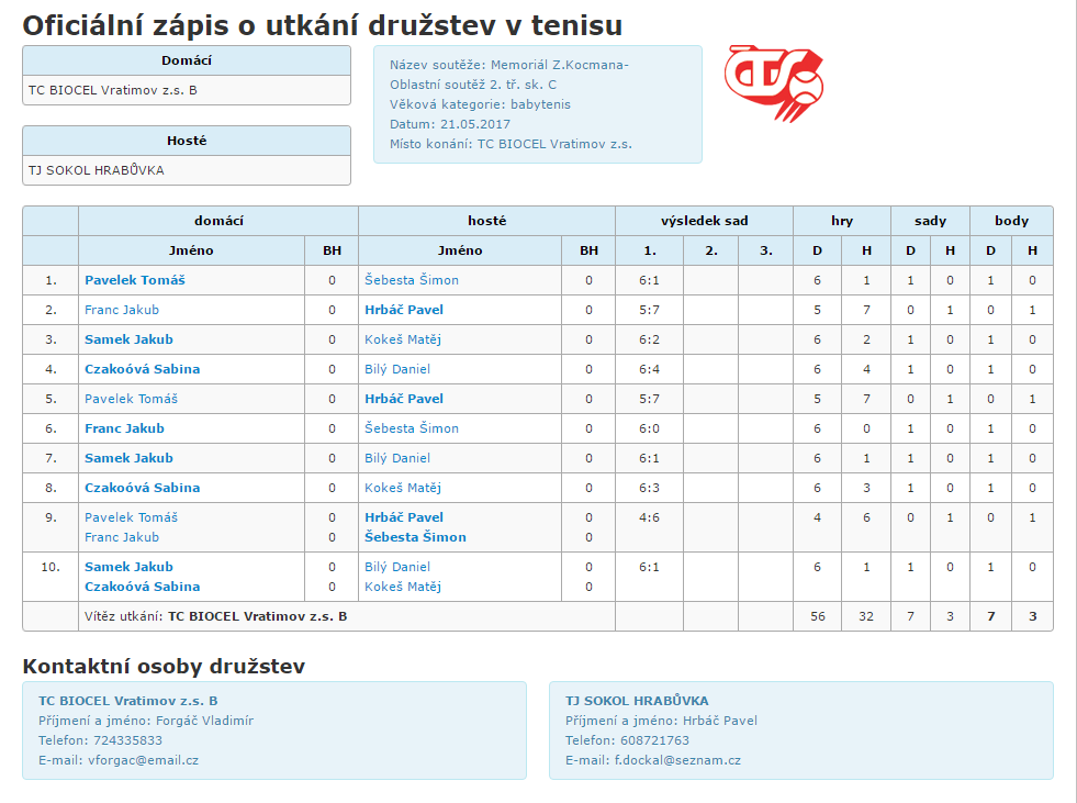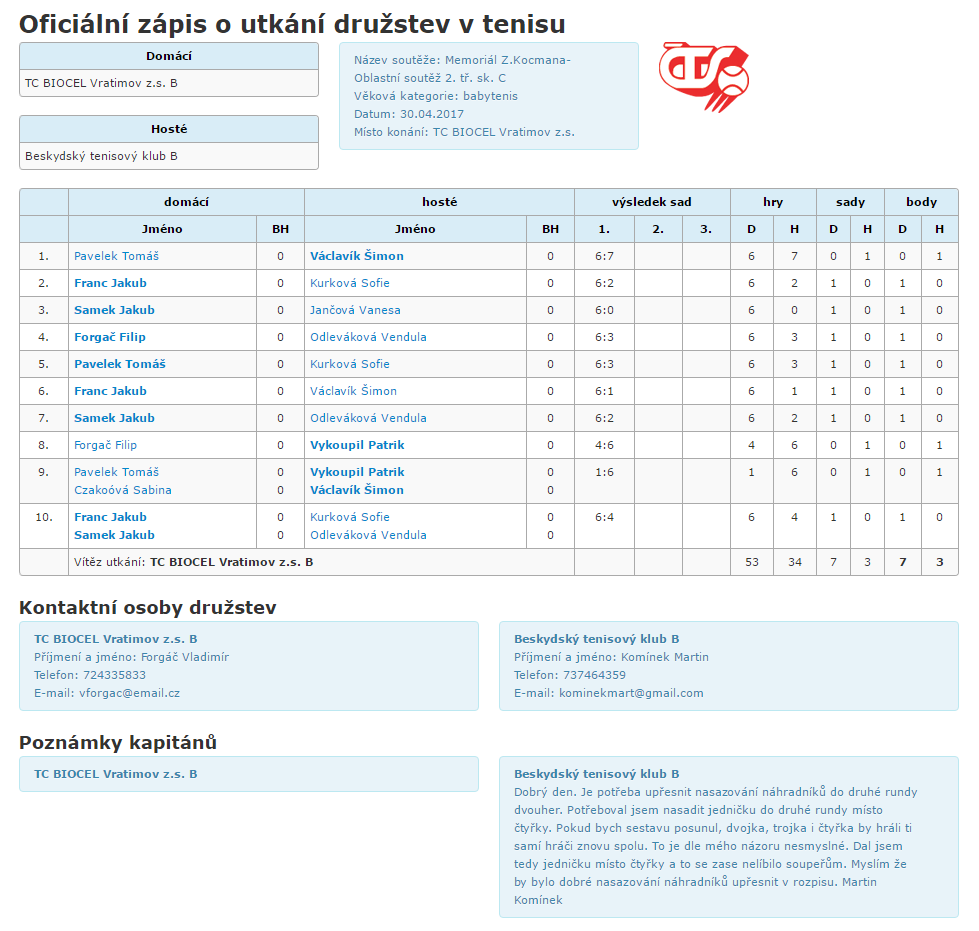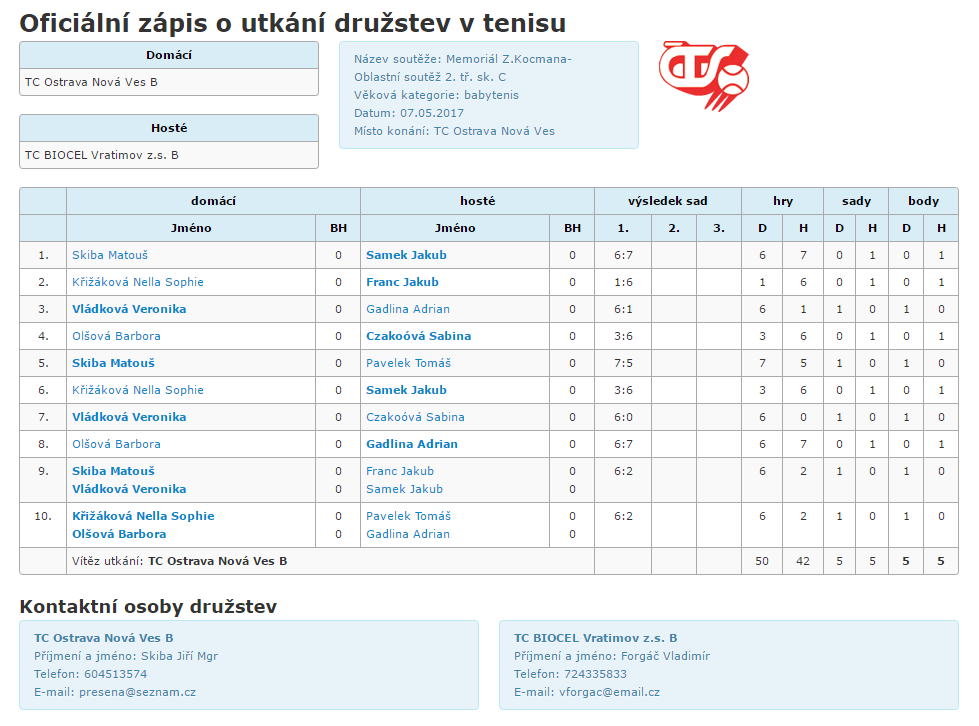Memoriál Z.Kocmana-Oblastní soutěž 2. tř. sk. C